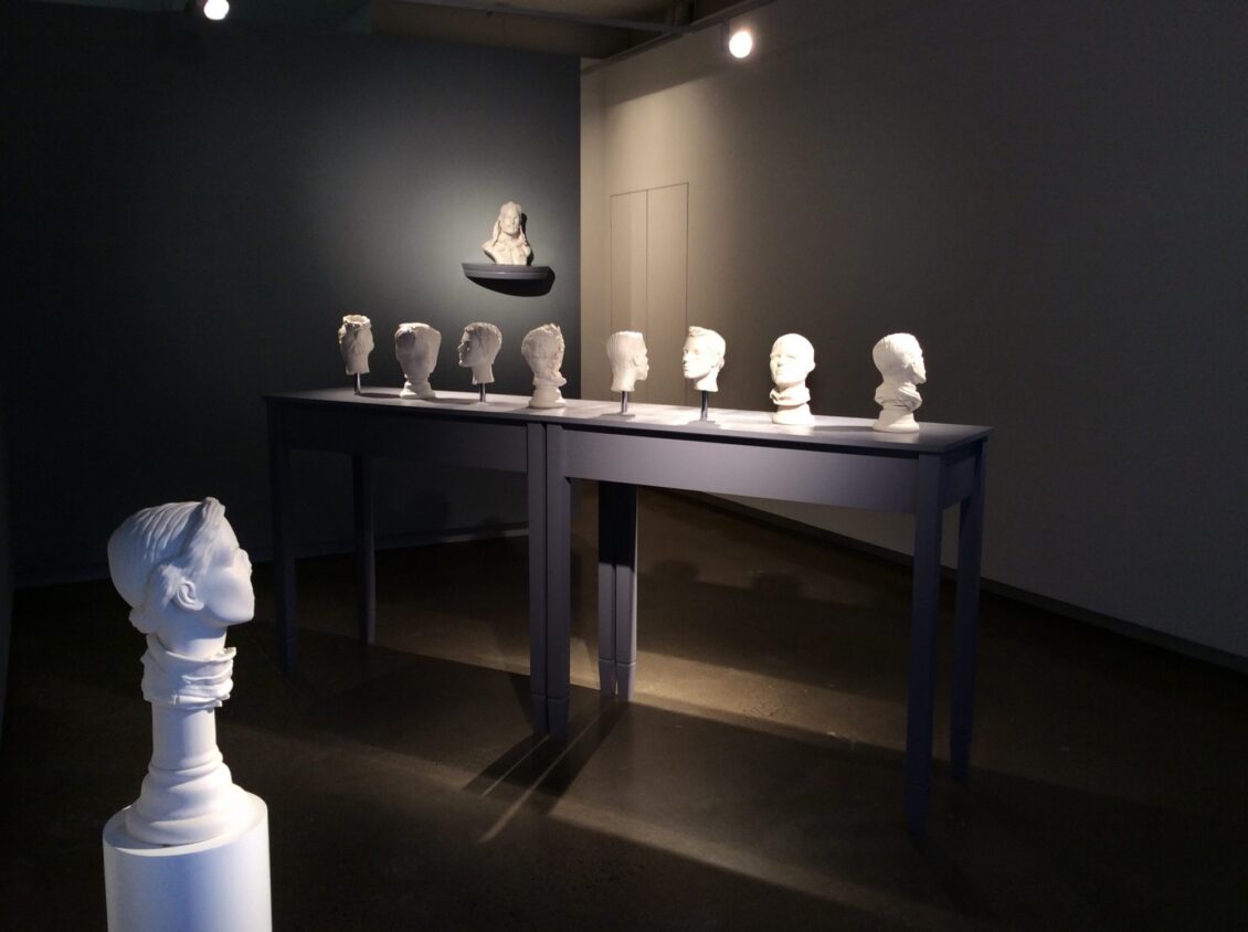 Ursula Burke, ‘Vestige’, 2016; L–R: Fallen Tiger, Parian Porcelain ‘Busts’ and The Brazen Head; photograph by Oonagh Young; all images courtesy of Oonagh Young Gallery.