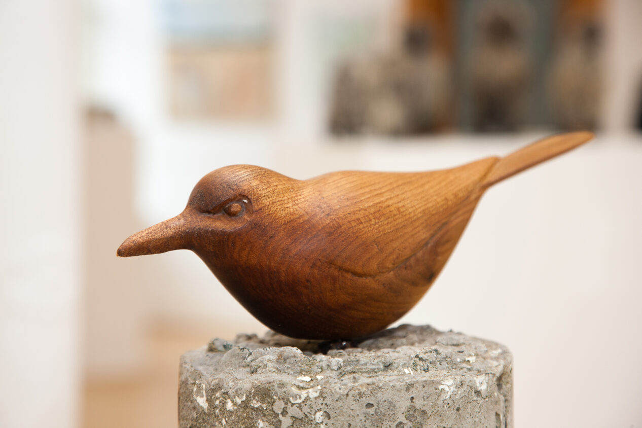 The location-based survey can, however, be a useful way to take a place’s artistic temperature, and maybe observe how a particular area has affected those that work within it. With all participants working from the Ards and North Down area, the strong impact of the area’s natural, coastal landscape is obvious. Tertiary palettes, organic forms, beach scenes and local wildlife are prevalent in this spectrum of painting, sculpture, craft, poetry, jewellery and furniture pieces.