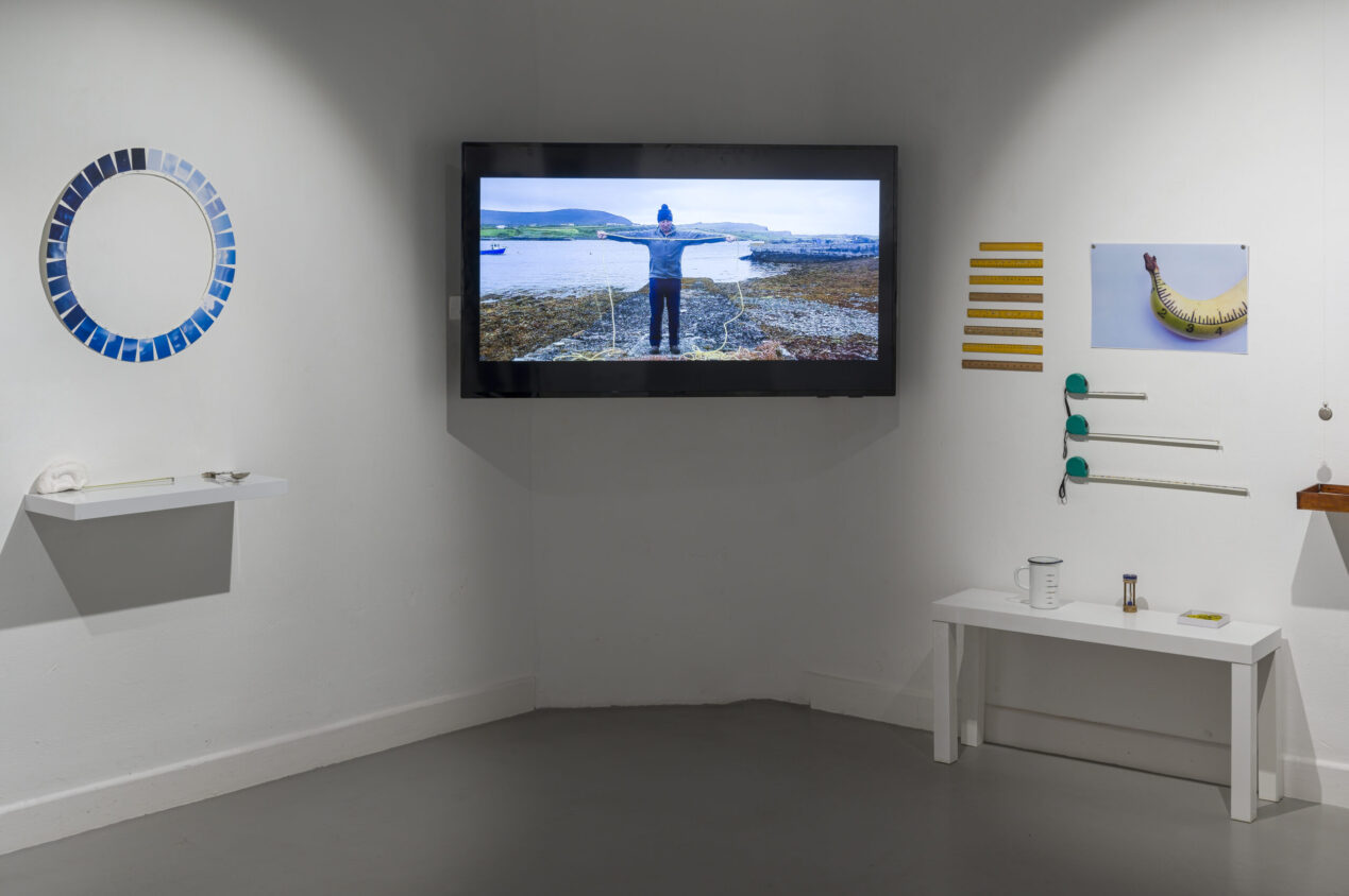 In 2017, Caoimhe McGuckin graduated from NCAD, and in 2019 she received Kildare County Council Arts Service and Riverbank Arts Centre’s Emerging Visual Artist Bursary Award. This September saw the opening of her first solo show, presenting a series of 40 artworks on the theme of measurement – though the year in which each artwork was made was not disclosed. Whilst disabling any chronological reading of her practice, careful and at times delicate installation suggests that this was a deliberate sidestep. The exhibition statement refers to the intervening years (including the Covid-19 pandemic) as an inspiration, with measurement serving as an “ordering principle […] in the face of uncertainty and powerlessness”, out of which the artist sought to construct her own “personal system of measurement as filtered through an imperfect metric”.
