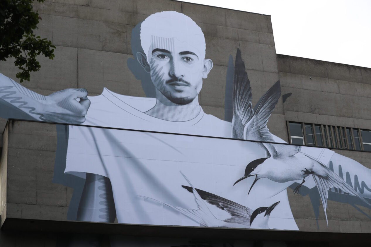 In a month that has seen Christo and Jeanne-Claude’s magnificent wrapping of L’Arc de Triomphe in Paris, the facade of one of Belfast’s most iconic buildings has also been the subject of an artistic intervention. Spanning over 25 metres across the cantilevered exterior of the Ulster Museum, Counterpart by Dublin-based street artist, Joe Caslin, is a visually striking and thought-provoking new exploration of life, culture, and society in Northern Ireland.