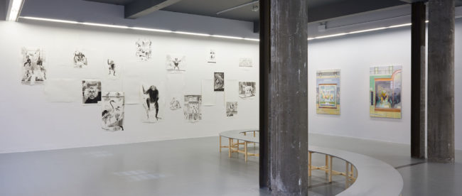 As I write this review, Mairead O’hEocha’s exhibition, ‘Tale Ends and Eternal Wakes’ at Temple Bar Gallery + Studios, is closed to the world. It is in its own state of suspension, not unlike the world outside the gallery and the subjects of her paintings, which feature dioramas from Dublin’s Natural History Museum, known as the ‘dead zoo’. Like the museum’s curator, O’hEocha echoes the role of ‘The Keeper’. She has carefully displayed her paintings and drawings in a way not unlike the tableau vivant, where actors pose silently, theatrically lit and in costume. This staging of the work is in keeping with the themes of display, artifice and the representation of nature that she has explored in previous exhibitions, most notably ‘Blackbirds in the Garden of Prisms’ at mother’s tankstation, Dublin, in 2016.