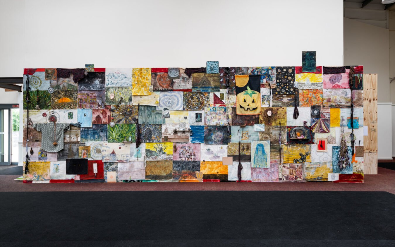 This is exemplified at Park Point, a large industrial space across the road from a bustling Lidl, on the edge of Limerick City, where the work is strongest. Richard Proffitt’s multi-layered, wall-based installation, Time Fades Away (2021), consists of an assortment of paintings on paper, clay sculptures, clothes, jewellery and other ephemera. A pale pink clay face sticks its tongue out; a small white bell hangs from a string; a pumpkin is painted in Proffitt’s idiosyncratic style. This is the detritus of a ‘personal archive’ and as I peer into the psyche of the artist’s life, the soundscapes of various video works echo throughout the space. Mario Rizzi’s The Little Lantern (2019) plays in a black box nearby, chronicling the work of Danish educator, Anni Kanafani. Sitting in what appears to be her office, Kanafani tells the remarkable story of how she set up kindergartens in Palestinian refugee camps in Lebanon since the 1970s, following the assassination of her husband, Ghassan Kanafani, an influential writer of the Palestinian resistance. These personal accounts are interspersed with clips of the children and their teachers, as well as a theatrical staging of The Little Lantern, a fairytale originally written by Ghassan for his young niece, Lamis, who also died in the car bomb explosion that killed him. Indeed, the emotional heft of these works continues.