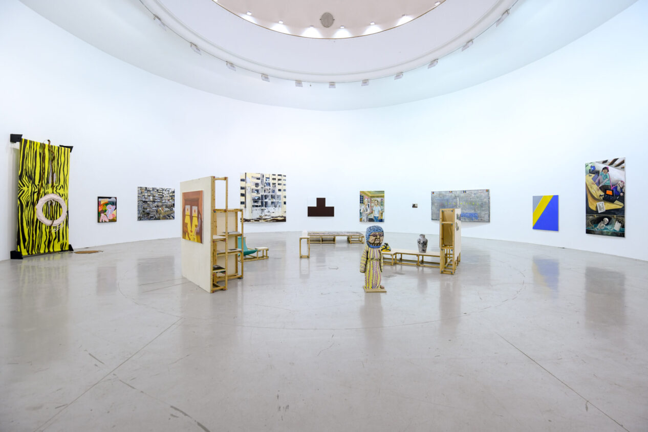 Cullen and Murphy’s curation was a cousin of their annual Periodical Reviews at Pallas Projects, but on a monumental scale. I questioned, in the commissioned essay, whether they would they leave paintings to fend for themselves on the walls or take a more expansive approach in a space that was first designed for sculpture in the 1930s. The inclusion of Tanad Williams’s and Tom Watt’s bespoke timber units to display both paintings and artists’ books (alongside a copy of James Joyce’s Dubliners) answered my question. The floor-bound positioning of Orla Whelan’s mosaic of interpretative painting-stretcher corner-keys, and Harry Walsh Foreman’s freestanding figures, helped to fuse walls with gallery, rather than wall-bound paintings lined up before a Goya firing squad. But there were sacrifices: the paintings that decorated Williams’s and Watt’s gallery furniture became part of the furniture. When I asked a HDLU member about the previous Leipzig edition of the biennial, he shared that contra-Leipzig, he was excited at how the Dublin contingent had activated the floor.