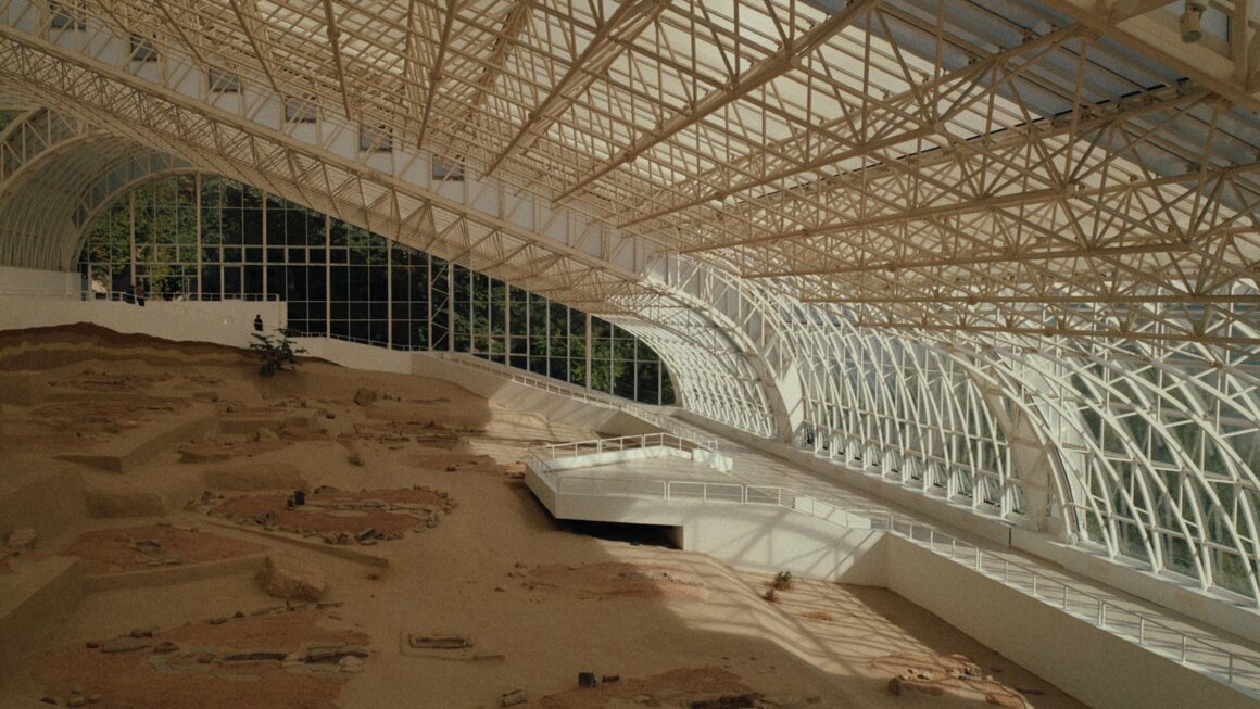 MA: This fictional dimension is mainly complemented by three types of imagery: speeches-to-camera by experts, who offer explanations of the sculptures; archival footage, associated with the construction of the dam by the Yugoslav and Romanian governments, which provides a political context; and the dance sequence, in a hotel situated in what became the Lepenski Vir archaeological site, interspersed with views of welded-steel-chain tapestries, specially produced for the site by artist Zvonimir Šutija, from which you got the inspiration to create a sculpture that the dancers manipulate.