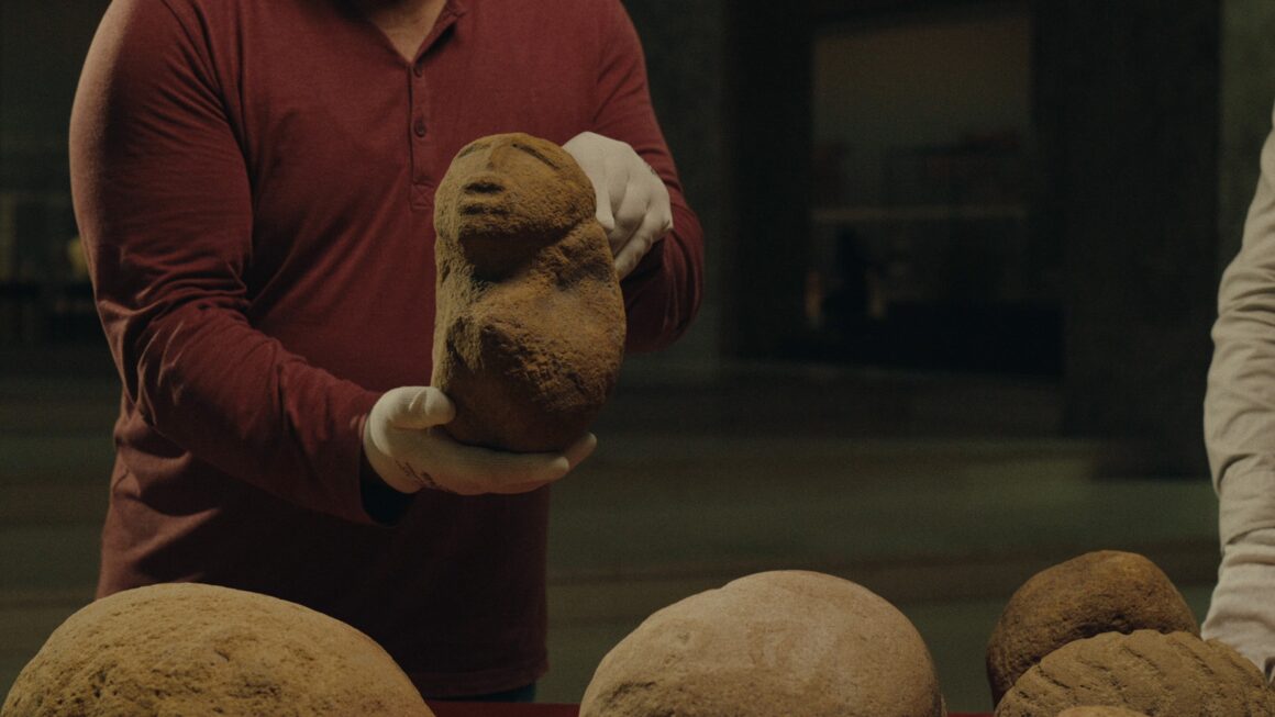 BK: This scene is the punctum – it breaks the fourth wall (which also happens at the beginning and the end, with the crew and the cast for the characters) and empowers me to revisit and interpret the sculptures of Lepenski Vir through the lenses of my family’s condition and movement from Europe to Australia. My position as author is that of both insider and foreigner, a liminal space occupied by someone between geographies and histories.