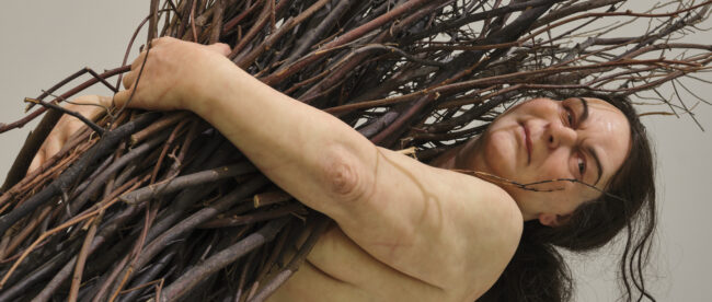 Viewing Ron Mueck’s current show at The MAC (29 July – 5 November) I find myself grasping for reference points. Firstly, from art history: from seventeenth-century Spanish polychrome sculpture to the mutated and mutilated figures of the Chapman brothers; and then beyond, from the ‘plastinated’ bodies of Gunther von Hagens to the latest humanoid robots paraded in science fairs. Even childhood visits to the National Wax Museum in Dublin come to mind. However, in terms of uncanny hyperrealism, nothing comes close to Mueck’s rendering of the human form in all its uncompromising detail.